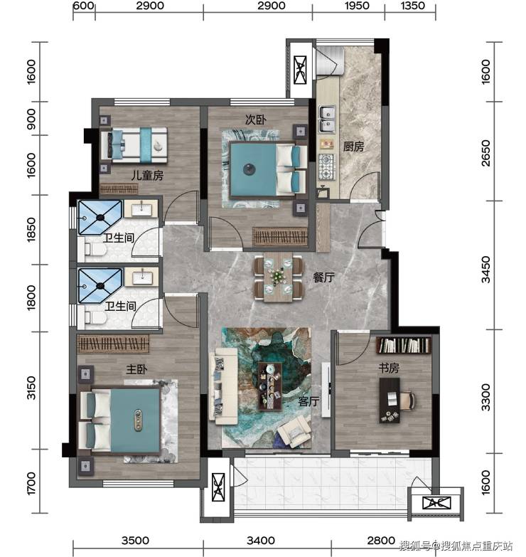户型方正,动线合理,空间利用率高,功能尺度舒适最大化