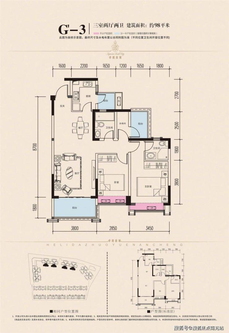 - 开发商:四川合丰置业发展有限责任公司 - 总户数:1066套 - 装修状况:清水交付 - 交房时间:四期预计于2025年9月交房,三期则计划在2026年12月交房 - 物业公司:通顺物业 - 物业费:2.7元 - 梯户比:高层为2梯6户,共18层;洋房是1梯2户,共12层 - 车位比:1:1 - 在售户型:4期高层推出89—98—115平套三双卫户型。3期有119平四房双卫户型(总价区间为107万—148万)。洋房则有118–129平套三双卫户型。