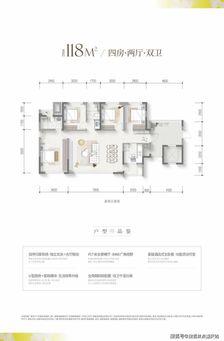 ⑥超享家庭厅——近 20 ㎡入户光厅+超 60 ㎡可视化方厅(含客厅、玄关、次卧改造开敞后)+约 8 ㎡景观阳台+约 8 ㎡明厨,实现九大功能场景