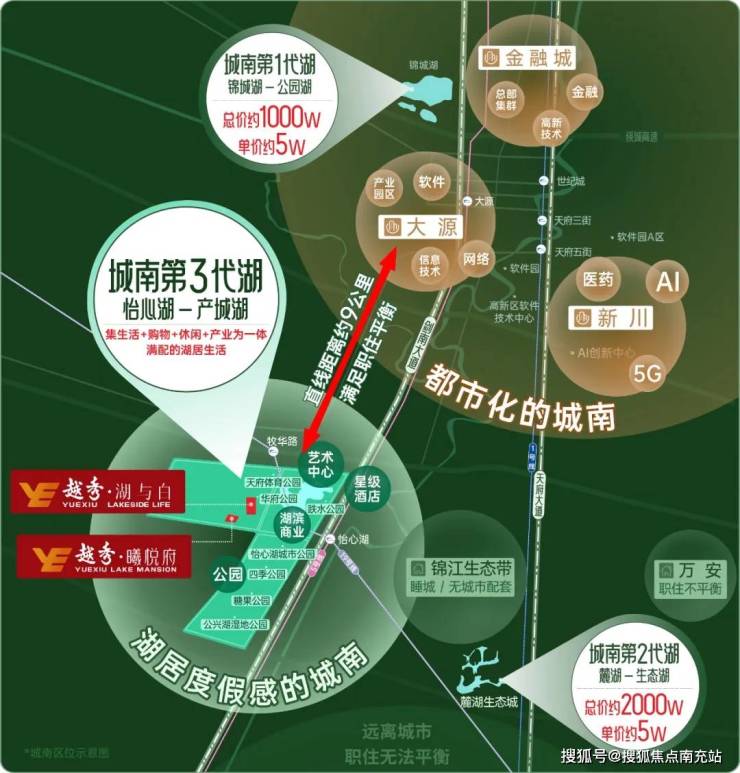 也正是因为A区的特点,在规划上,核心生活配套才有可能在这一区域充分释放。我们就发现,刚刚签约的怡心湖重磅资源——成都树德中学怡心湖学校项目,就与越秀湖与白、越秀曦悦府仅一街之隔,深度占据怡心湖头部教育资源。