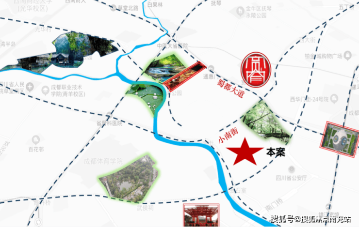 三大公园毗邻:人民公园、百花潭公园、浣花溪公园,三大公园构建绿色诗意栖居。