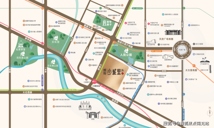 城投·少城里位于市中心,一公里内享宽窄巷子,人民公园两大城市级景点,三公里内咫尺可达天府广场、锦里、IFS、春熙路,太古里等城市超级IP,千万人流加持,城市财富汇集之地。