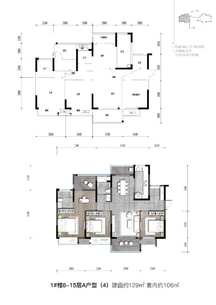套内:106㎡ 建面129㎡