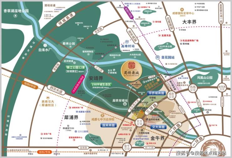 大丰商圈 华侨城商圈 交大商圈 犀浦商圈,多个大型综合体,家门口的世界级商圈,开车15分钟内,均能达到4大成熟商圈,同时项目自身配备2万方的蜀绣主题商业街,缔造家门口的全新商业空间,轻松满足家庭日常消费;