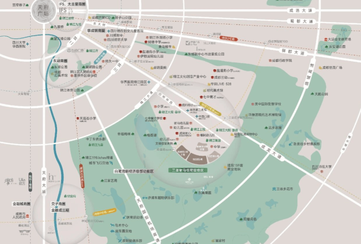当锦江传统奢宅走廊(春熙路-攀成钢-东大街)遇见成都新晋顶奢豪宅带(金-林-白-驸,驸马半岛,屹立在两大奢宅通廊交汇点,笃定豪宅发展价值高地。