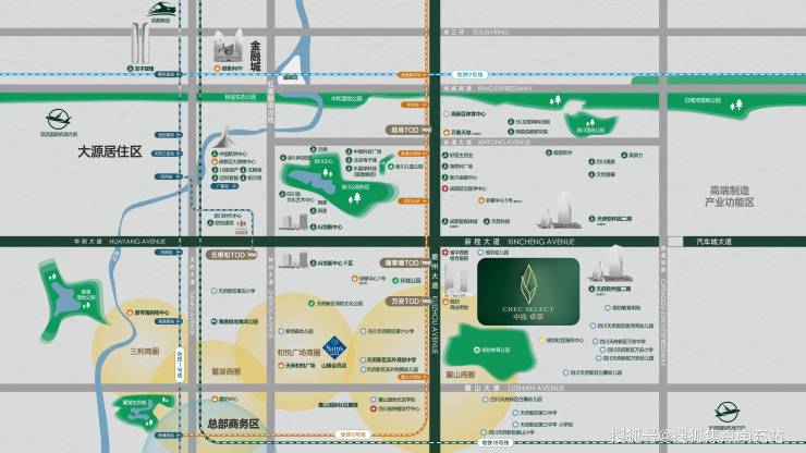 + 七大商圈鼎立:五根松TOD(获批并启动)、万安TOD(规划中部分待批)、蒲草塘TOD(已获批)、天府和悦广场商圈、麓山商圈、三利商圈、麓湖商圈