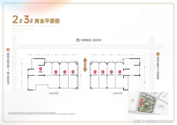 5、我们项目正对面是成华区第七人民医院(按三甲标准修建),仅一街之隔,是一所由政府举办的区级综合医院,为市、区社保定点医疗机构;项目右侧是新生堂妇女儿童医院,是一家高规格私立医院,使该辖区能享受医疗便利,项目南侧约500米是成华区教育局与成都树德中学携手组建的成都和悦初级中学,2025年内将开工建设,同时能为项目带来大量的流动性人群以及高质量消费力。