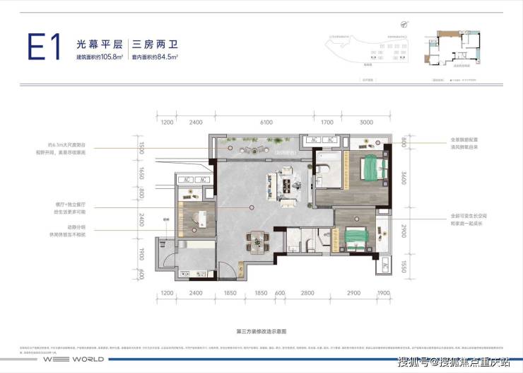 E1 建面约105平套三