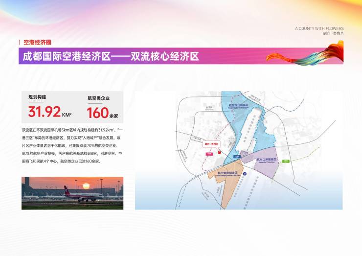 本区域是国家发改委批复的第六个国家级临空经济示范区;是以双流国际机场为中心,管理面积约100.4平方公里。有航空港功能区、临空高端制造产业功能区、航空物流与口岸贸易功能区、临空综合服务功能区、生态防护功能区这五大功能分区。地区生产总值突破800亿元。在政府高度重视下这个区域的商业发展潜力巨大,享受持续发展红利,商业价值未来可期;