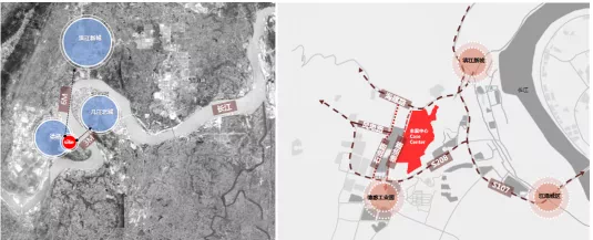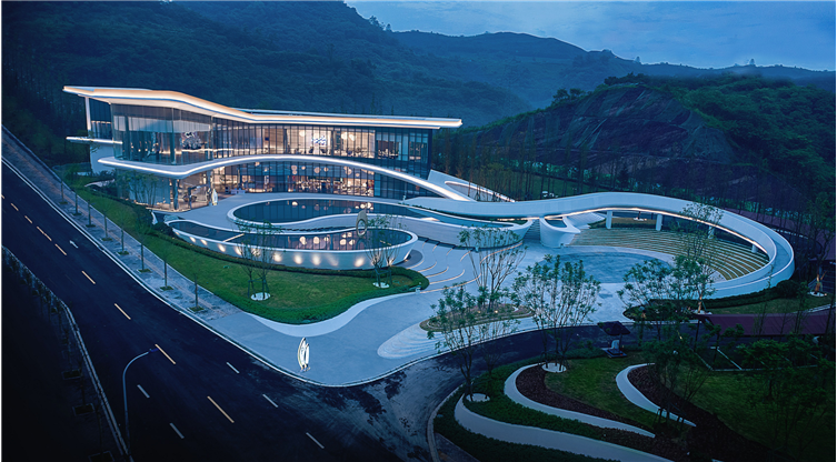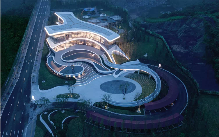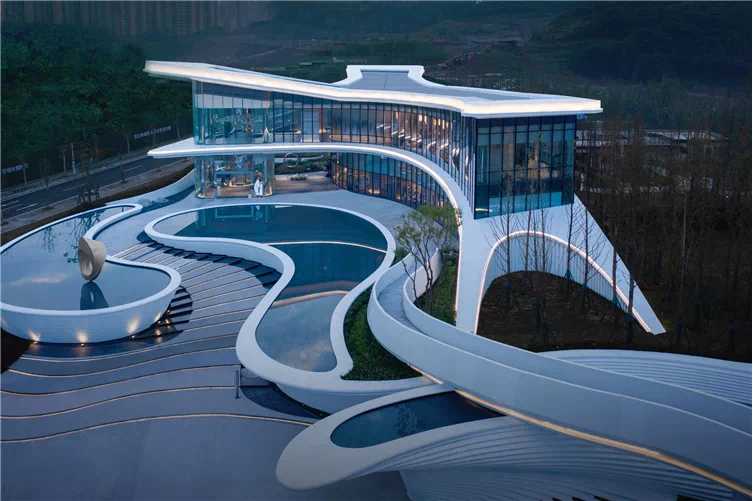 项目以鲲“势”鹏“意”为设计理念,与重庆桥都文化结合,创造独有的新现代风格;优质的空间格局划分,严谨合理而不失调性,设计采用以简化繁的结构主义探索城市与文化的交融,通过空间之美传达现代生活方式,解读“对话不同功能,面向共同未来”的城市思考。