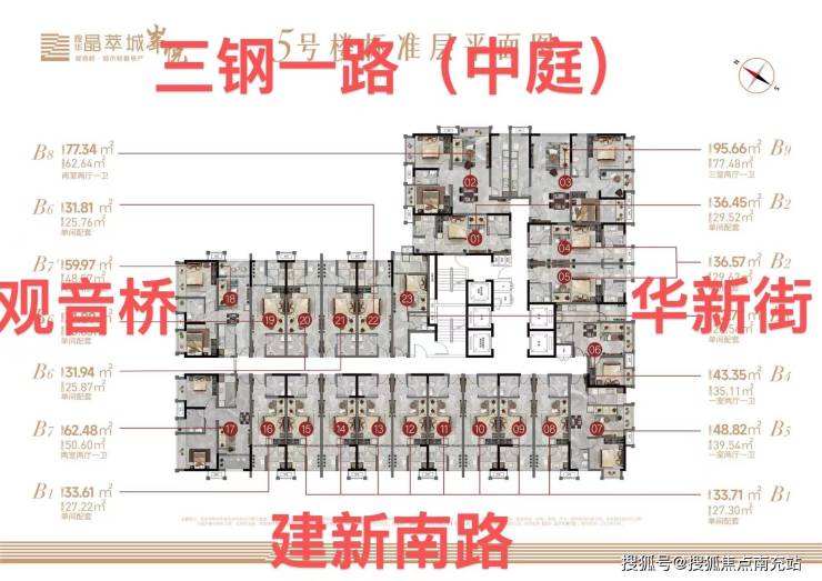 B5户型建面43.35-48.82㎡ 套内35.11-39.54㎡