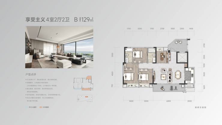 小高层 - 建面约129㎡,户型为四室两厅两卫。
