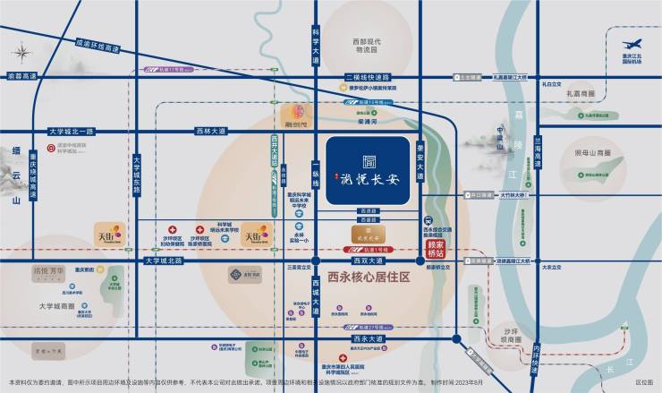 路网纵横:地块西侧永志路已投入使用,衔接西双大道、西林大道等城市主干道,自驾快速接入内环快速,畅联沙坪坝商圈与重庆西站;