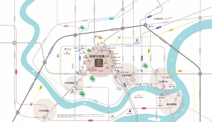 路网纵横:紧邻电子校立交,衔接金龙路、红锦大道等城市主干道,快速接入内环快速,自驾 10 分钟可达观音桥商圈,15 分钟抵达江北国际机场,商务通勤与跨城出行高效便捷;