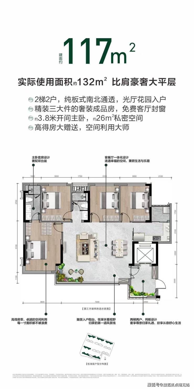 中空low-E玻璃+现代轻奢风水包砂外立面+业主会所室内恒温泳池+健身房+大面积高端石材入户大堂+仿石地砖公区过道+星空屋车库单元入户厅+全新水磨石地面+全屋交付柜体+全免费封窗。