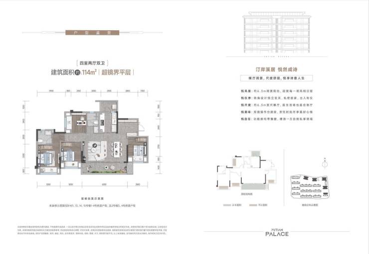 T4跨界平层产品,位于1号楼,建筑面积为114平米。
