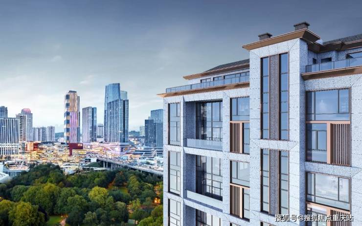 设计美学重庆唯一:源于顶尖豪宅『古北壹号』外立面设计灵感,独特的菱形格调,微斜折面元素,大面积玻璃幕墙,致敬永不过时的经典,非常克制的表达了现代古典雅致的极简, 真石漆与石材,金属铝扣板的结合,低调沉稳与低密轻奢共鸣。