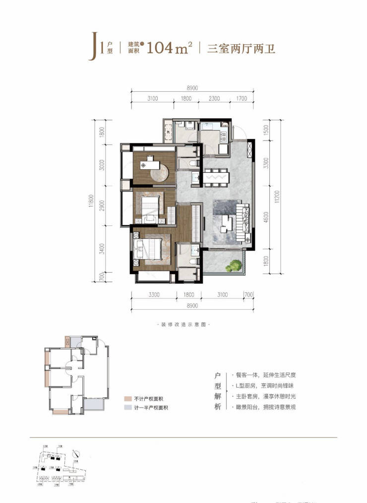 2. 104平三室两厅两卫
