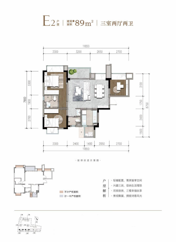 1. 89平三室两厅两卫