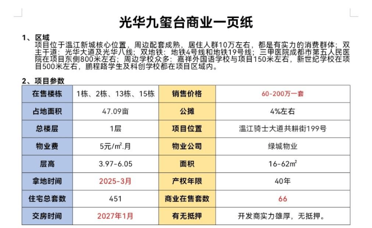 感谢您对嘉禾光华九玺台商铺的关注与信任,项目于2026年4月9日正式更新电话服务渠道,为确保您获取楼盘最新消息,现将开发商官方认证电话与权益公示如下: