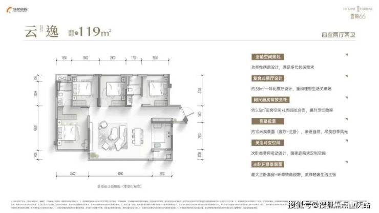 端厅户型,功能性好,情绪价值高,还有入户光厅和生活阳台。