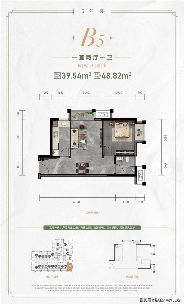 B5户型建面43.35-48.82㎡ 套内35.11-39.54㎡