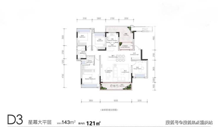套内121平/建面143平