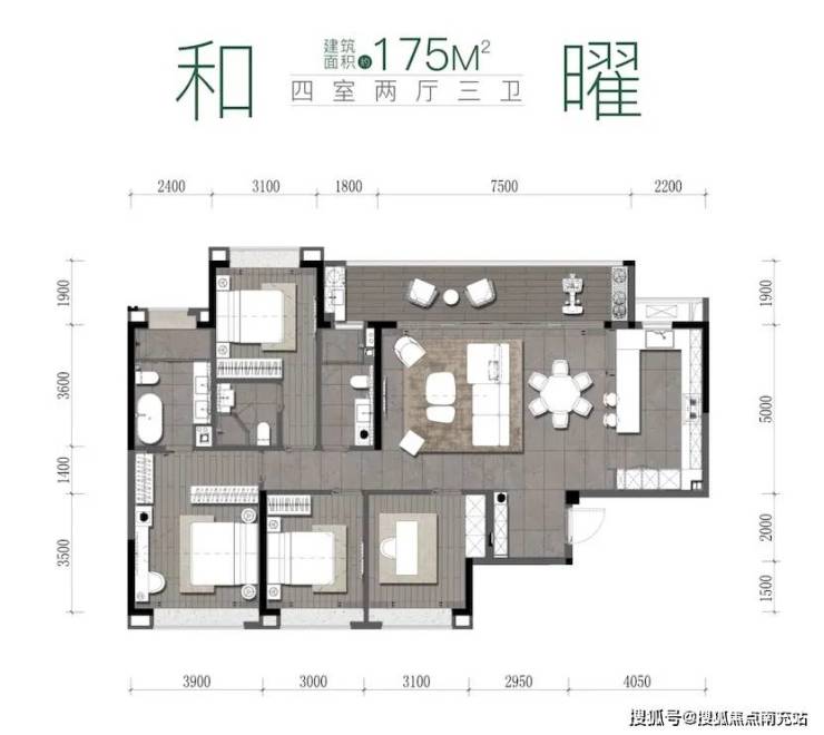餐客厅一体化设计,与9.5米大尺寸景观阳台无缝对接,空间感和视觉效果增强。