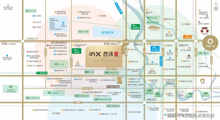 拥有三横+两纵立体路网,有轨电车蓉2号线、k5快速公交等多维交通路网,地铁4号线(中坝站)、9号线(培风站)、13号线(规划建设中),三线交汇