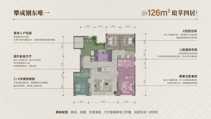 龙湖新绿色·锦江峯萃只有两种户型,建面约126㎡和建面约140㎡。龙湖+新规2.0的户型魅力,在龙湖新绿色·锦江峯萃空前凸显。