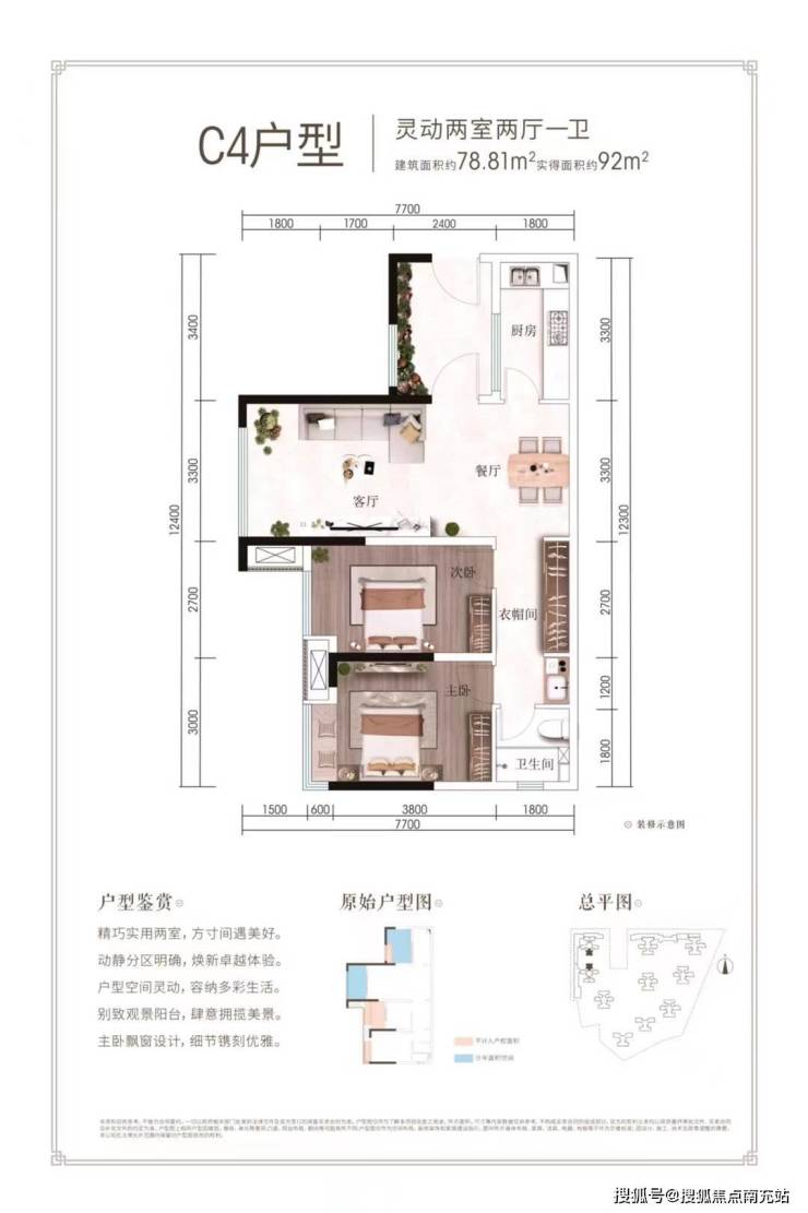 本批次产品的户型建面约78-99㎡,涵盖套二、套三,能给予购房者较大的选择面。