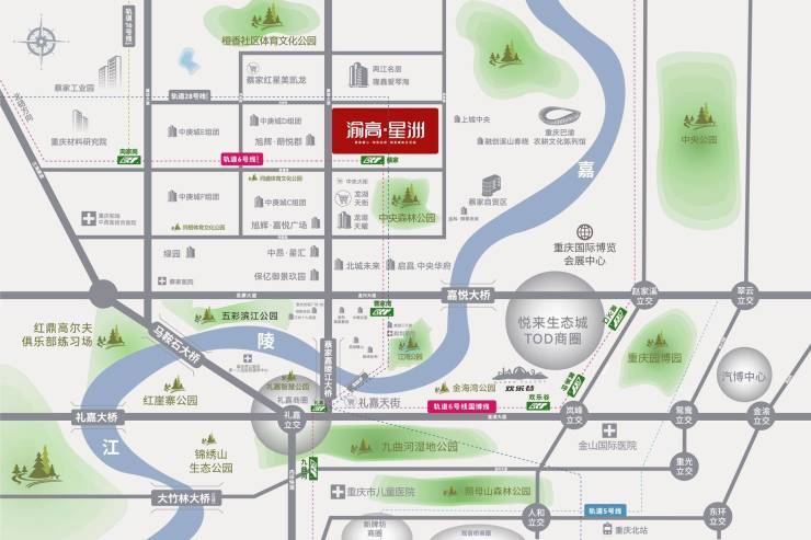 距离6号线蔡家站200米。蔡家新区还将拥有1条嘉陵江黄金水道、11座跨江大桥、3纵3横6条城市快速干道、3条轨道线,蔡家与主城核心区连通的“血管”将全面打通,多元化出行选择将畅行全城,15分钟车程抵达北碚城区;距江北机场和龙头寺火车站各约20公里,20分钟车程;距观音桥约25公里,30多分钟车程;距解放碑约30公里,40分钟车程。