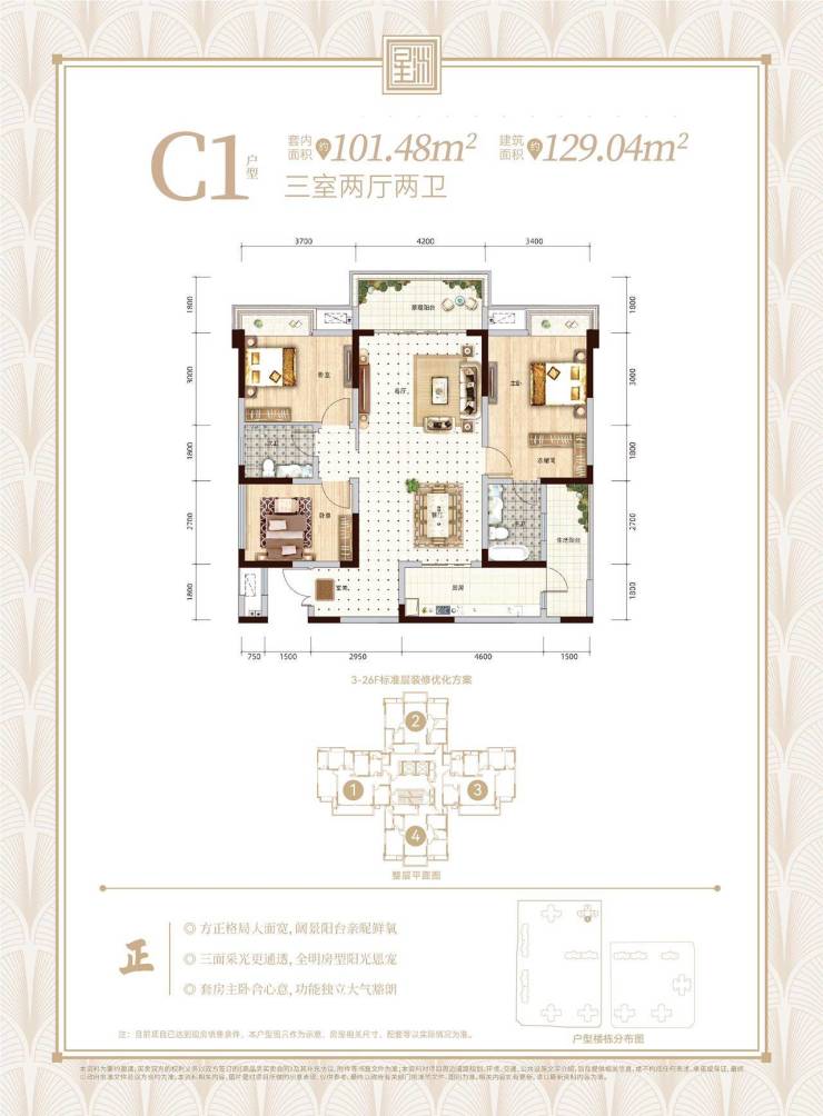 建面:?29?²套内101㎡(3室2厅2卫)