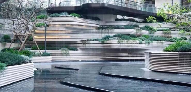 它的园区采用立体抬升式景观体系,让归家动线始终保持向上,兼具隐私与仪式感。主入口不再沿道路一字铺排,而是以立体建筑体块与城市绿地融合,形成立面层次丰富的视觉界面。业主步行归家,如登上城市空中花园。