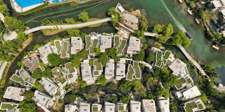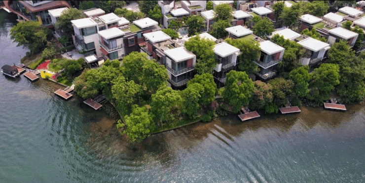 8.原溪岸:位于滨湖区亲水湖居,大隐于一城繁华中央。抬头可见蓝天白云,低头可见翠绿湖岸,现代湖岸太空舱风格独栋别墅,全新理念升级幻主,紧邻山林溪谷公园,湖景依然很棒。