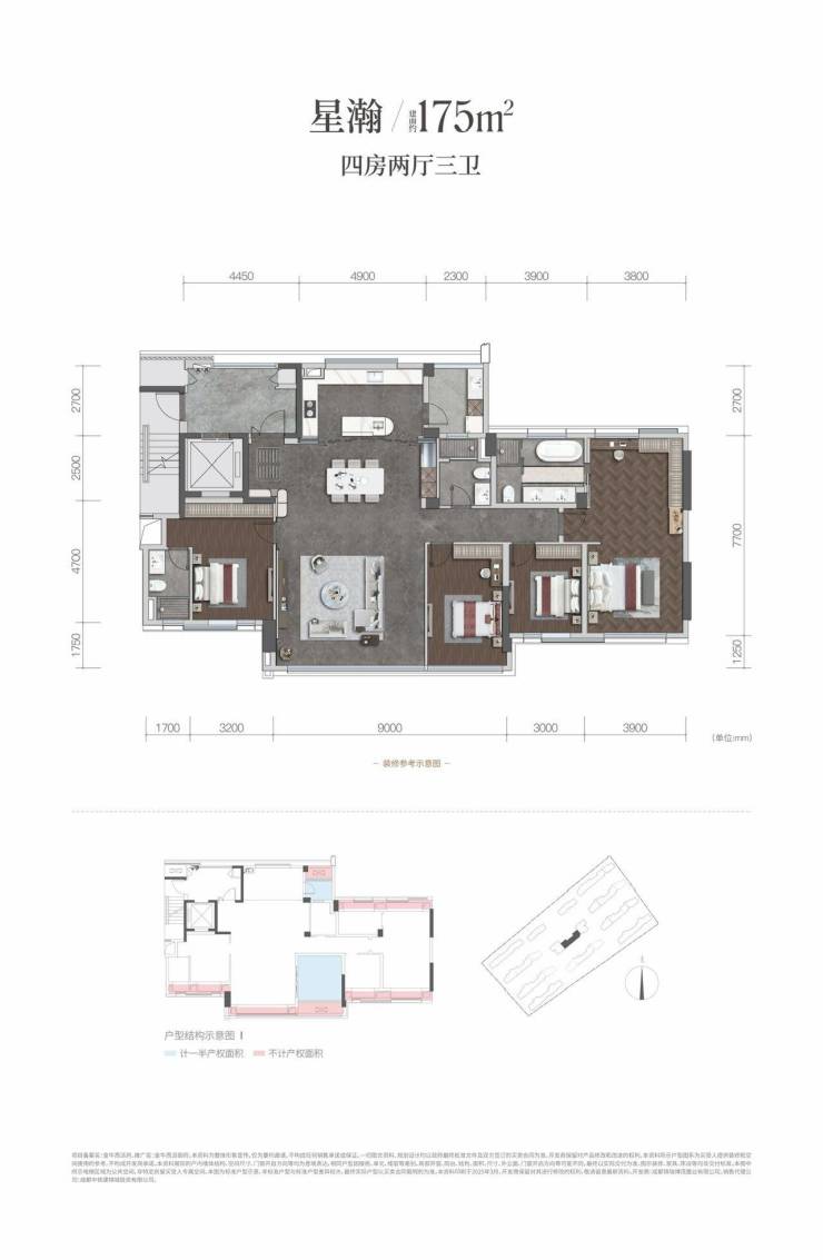 建面约175平套四