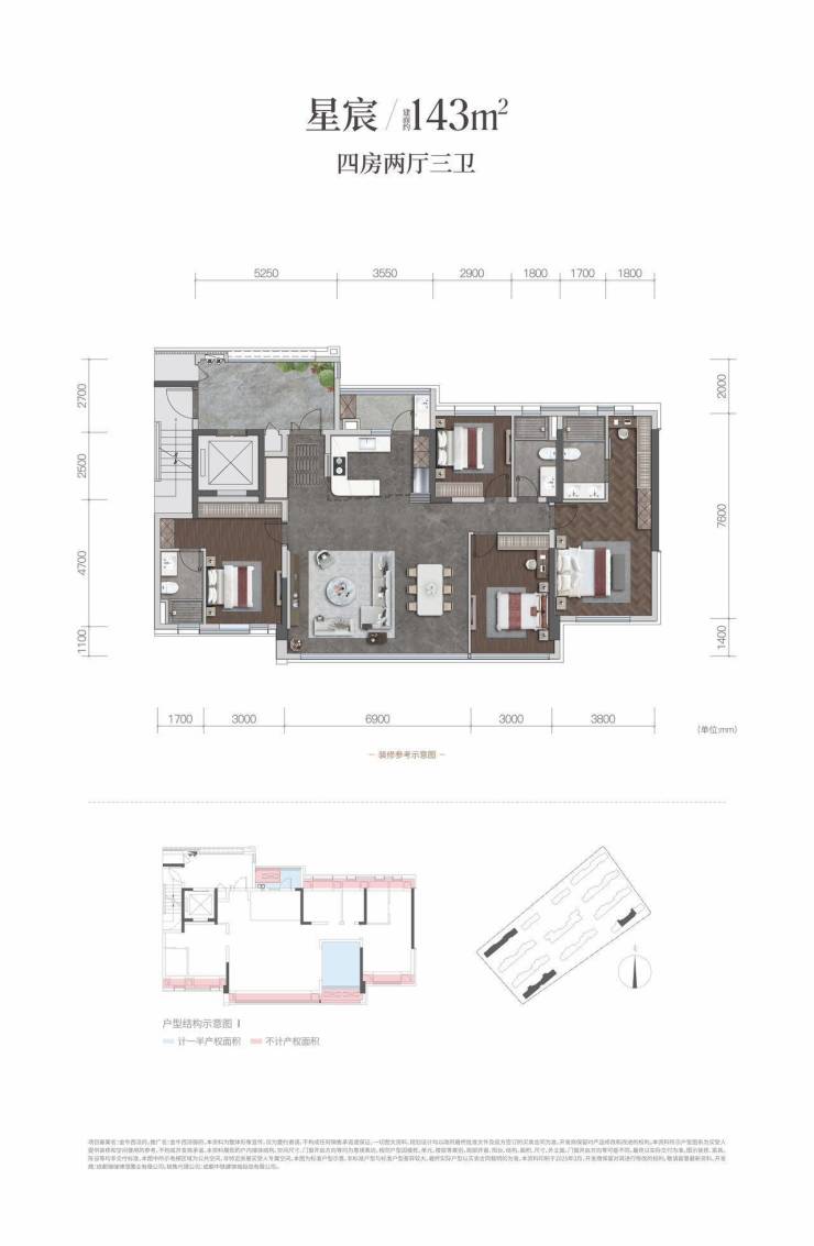 建面约143平套四
