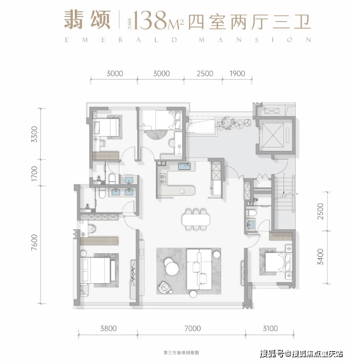 占地9.8亩,容积率2.0,在这样一宗地块上,鸿山·翡翠青邸仅排布了2栋楼,其中1号楼为16F,有两个单元,全部为138㎡户型;2号楼为17F,独栋独单元,全部为140㎡户型,两个户型均是2T2户设计。整个小区共计94户,后期物业为鸿山自持物业,费用为4.5元/㎡/月。