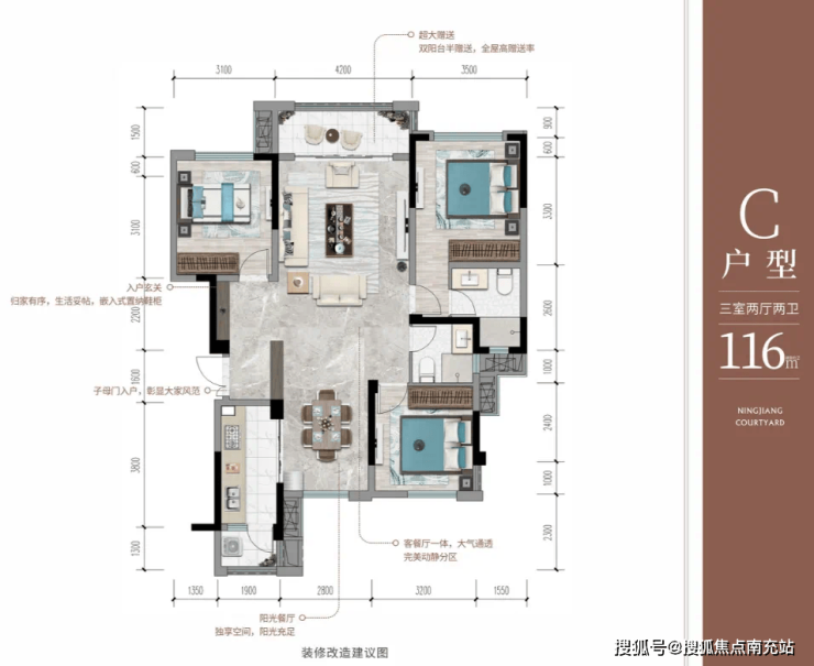 总价百万起 买城芯一环板式洋房板式通透,是宁江大院产品设计上的一大亮点。宁江大院打造建面约81㎡-116㎡纯板式洋房产品,一楼带花园,享受低密高品质生活。总价百万起就可以入驻都江堰一环主城芯,这可能是为数不多的机会。