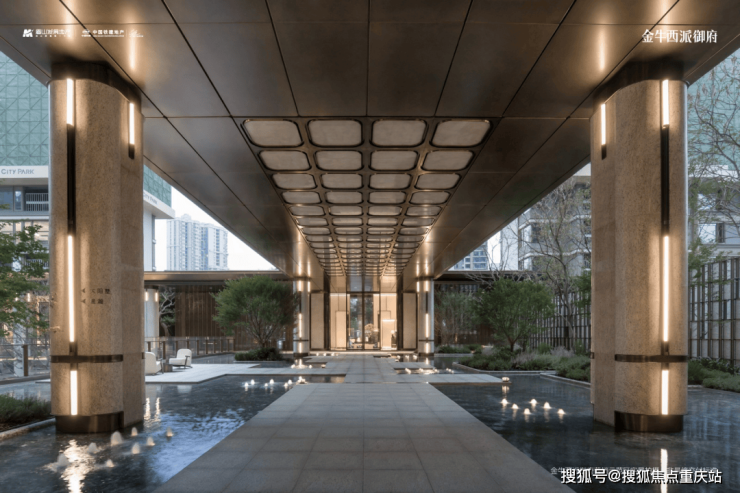 地上、地下双层归家体系:在传统归家主大门、驾车归家两个动线的基础上,在大门右侧设置了一个“车马院”落客区,用于访客车辆与出租车、网约车的临时停靠,进一步强调归家私密性和仪式感。负一楼的“车马院”落客区设计与下沉会所无缝衔接,精致的氛围营造,极大的提升了住户的尊崇感。