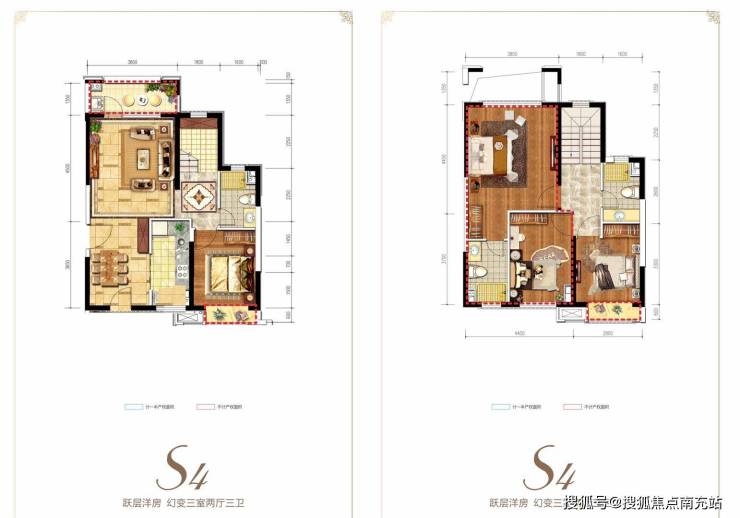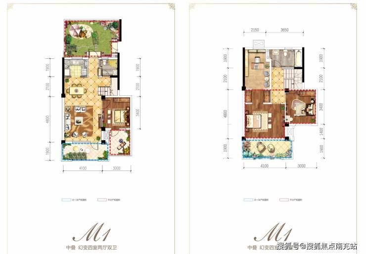 【户型图展示】1. 下叠户型图(131 - 133㎡)