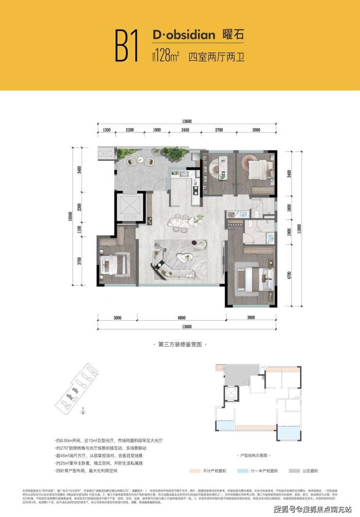 128㎡户型也毫不逊色。厨房拥有270度花园环幕采光,为烹饪增添美妙体验;15㎡巨型光厅,宽敞明亮;四叶草户型布局,动静分区合理;全面屏落地玻璃,进一步提升居住品质。