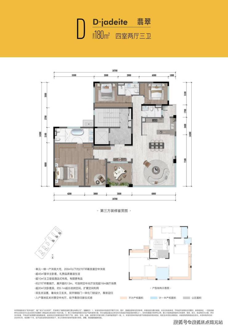 180㎡户型更是稀缺珍品。主城独此一层,在200平以下拥有270°环幕落地视野及浪漫空中花园洋房产品。超45 ㎡豪华主卧套,尽显大气;超10㎡主卫星级酒店布局,品质非凡;270°转角13米全景舱端厅,可连同空中花园实现超16米端厅场景,空间感满满;超20m²次卧套,舒适宜人; 双开铸铝门一体化门锁设计,安全又美观;入户双玄关对景空中花园,营造出独特的归家氛围。