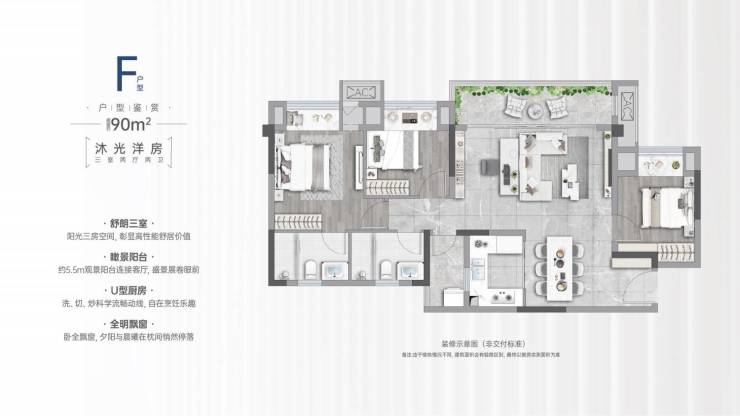 ?户型1:建面90㎡(三房)