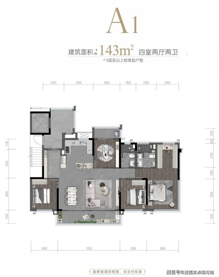 建面约143㎡套四双卫(端户)