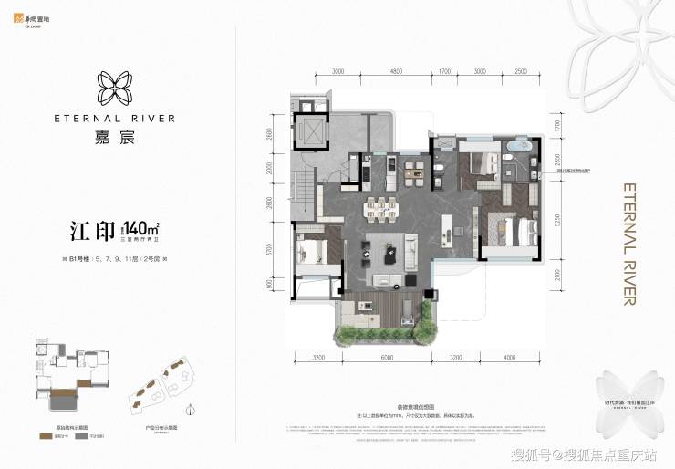 建面约140平套三