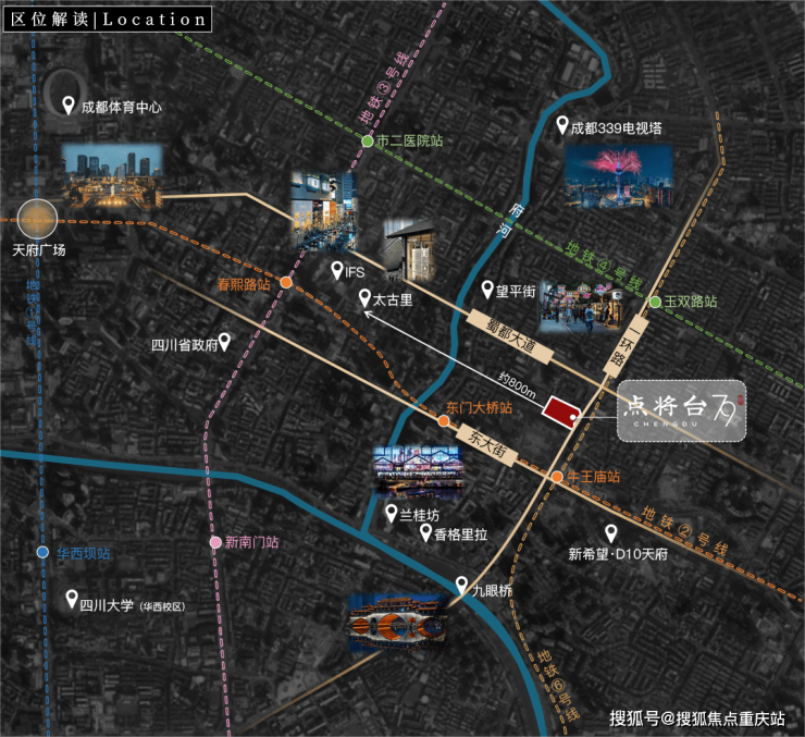 卓越点将台79号位于锦江区一环内,紧邻太古里,直线3公里范围内坐拥339、兰桂坊、九眼桥等城市地标,所在区域更是第一张纸币“交子”的诞生地,历史底蕴深厚。