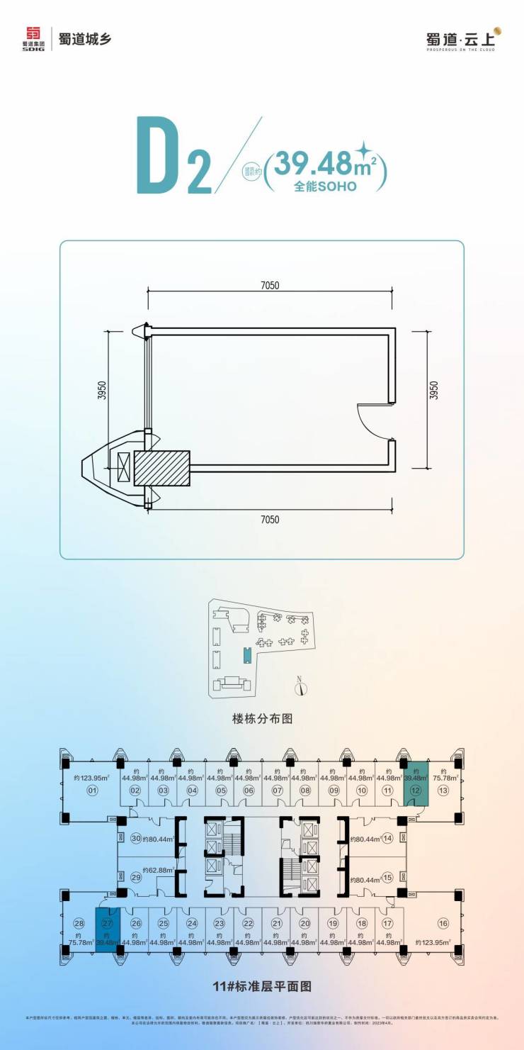 ### 户型鉴赏蜀道云上户型面积约在40 - 125平米之间,独特的天际视野建筑设计,让住户能够俯瞰整个板块的美景。项目主打SOHO和LOFT两种产品类型,旨在满足不同人群多样化的居住需求。其中,SOHO产品层高3.3米,面积区间为39 - 125平方米;LOFT产品层高5.7米,面积范围是30 - 98平方米。这些户型设计十分合理,空间利用率极高,无论是用于自住,享受舒适的居住环境,还是用于投资,都具备很大的优势。此外,项目配备了高品质的物业服务,致力于为业主打造更加舒适、便捷的居住体验。