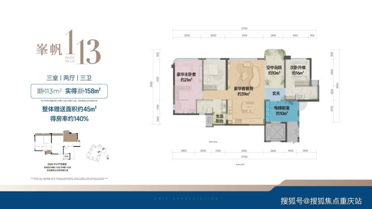 建面约113平套三