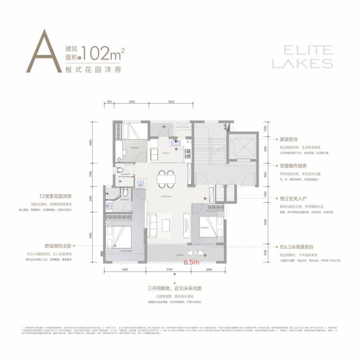 ### 跃级花园洋房,全方位高配户型,引领品质生活#### 建面约102㎡板式花园洋房市场上稀缺的8 - 11层洋房,堪称“最后购入麓湖洋房的珍贵机会”。它采用纯板式结构,实现南北通透,拥有双景观视野。约6.5米的大阳台,带来大面宽、大视野,让您尽享大平层级别的观景体验。约40㎡的竖厅设计,不仅空间利用率更高,而且生活动线流畅自然。南北双阳台的配置,不仅保证了室内的通透感,还能实现独立晾晒与收纳,充分保障了居住的私密性。